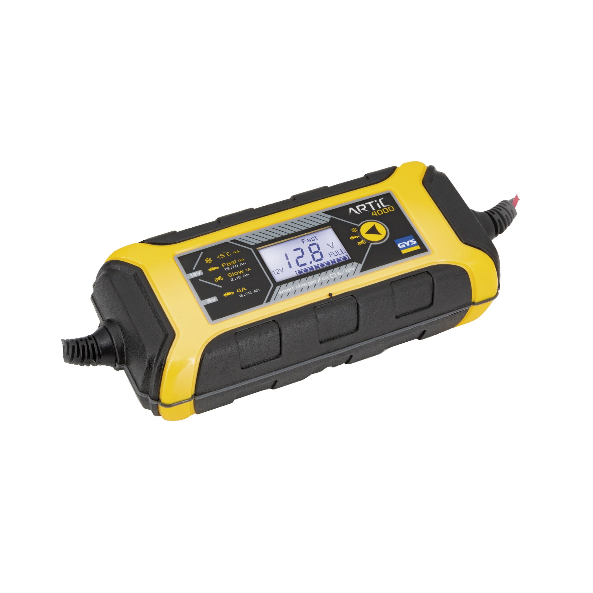 En av de främsta fördelarna med GYS Artic 4000 är dess variabla laddningskapacitet. Den kan leverera antingen 1A eller 4A, vilket gör den idealisk för en rad olika behov. Oavsett om du behöver en snabb laddning för att komma igång snabbt eller en långsam och skonsam laddning för att bevara batteriets livslängd, kan GYS Artic 4000 anpassas efter dina specifika krav.