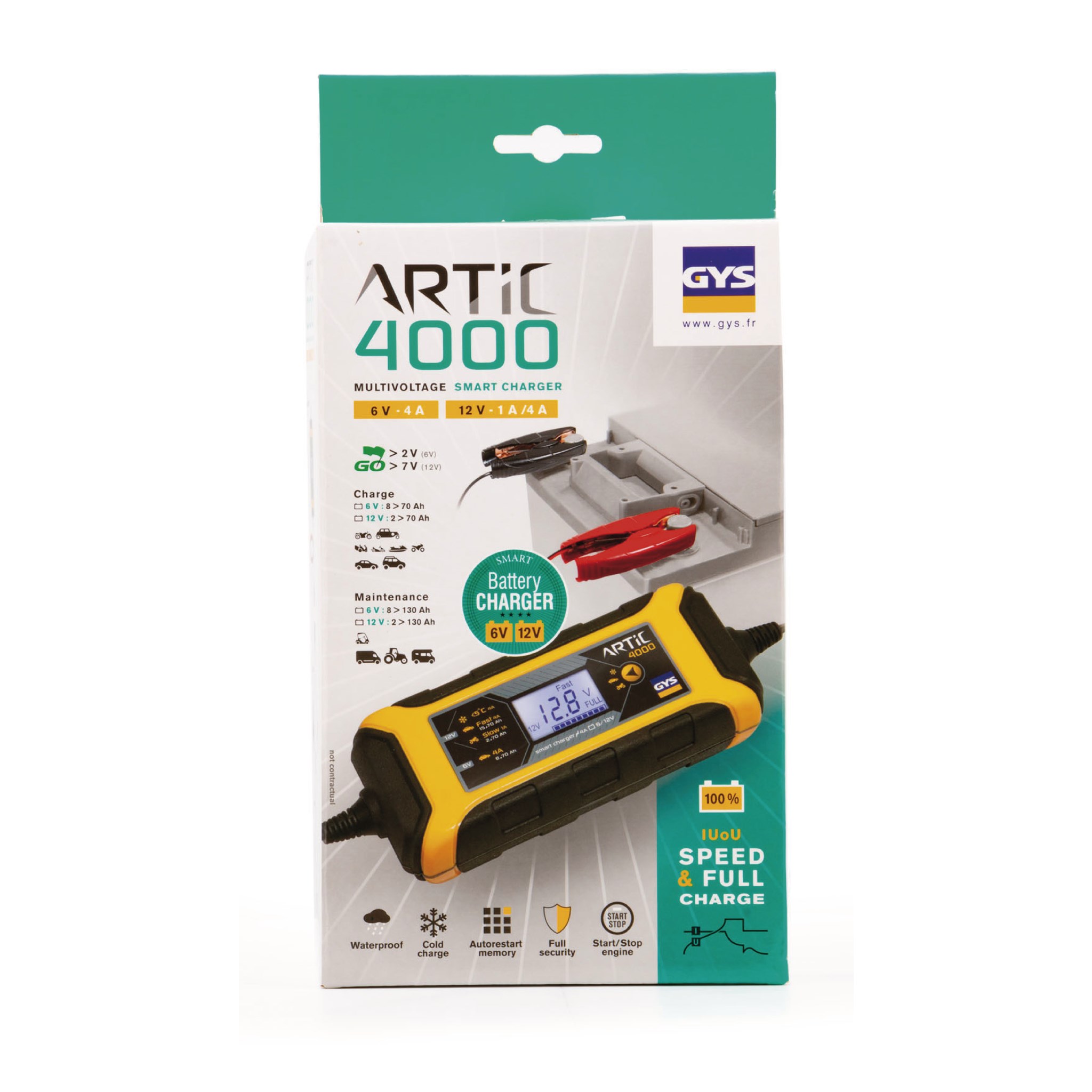 GYS Artic 4000 är perfekt för en mängd olika batterityper, inklusive bly-syra, gel och AGM. Den är idealisk för användning med personbilar, motorcyklar, båtar och fritidsfordon, och den kan också användas för att ladda trädgårds- och arbetsredskap.