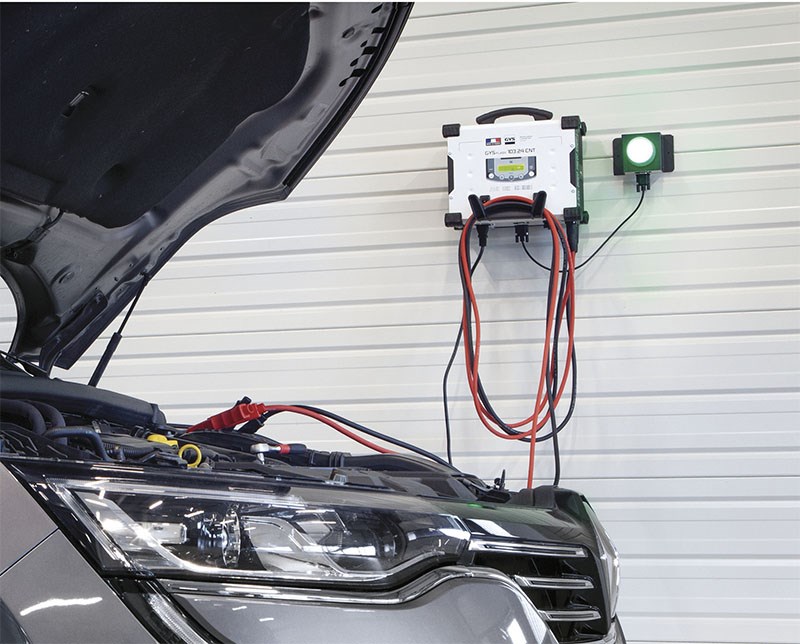 GYSFLASH Vertical 103.24 CNT FV är en högpresterande 100 A laddare med inverterteknik, särskilt utformad för montering på vägg eller lyft. Den är designad för att hålla 6 V, 12 V, 16 V och 24 V blysyra- och litiumbatterier vid en perfekt stabiliserad spänning under diagnostiska faser, vilket garanterar optimal laddningskvalitet för moderna fordon. Tack vare USB-anslutning är laddaren 100% anpassningsbar.