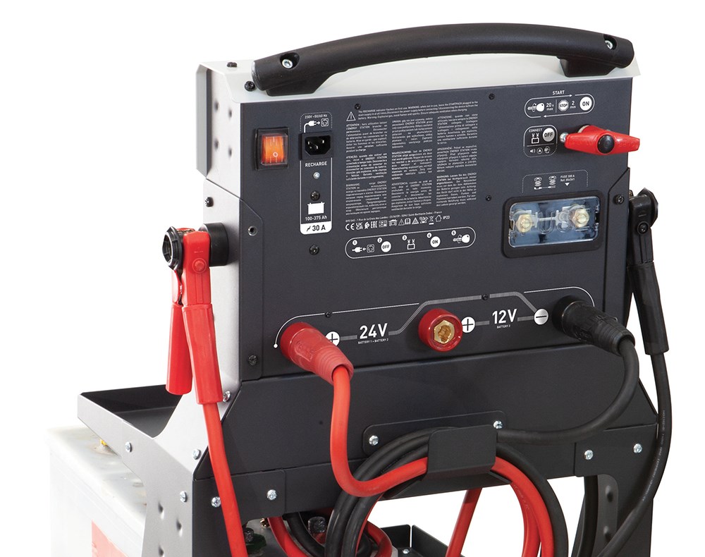 Gys Energy Station är en professionell, fristående startvagn anpassad för att starta tunga fordon såsom lastbilar, entreprenad- och jordbruksmaskiner samt bussar. Med sin robusta konstruktion, inbyggda smartladdare (12 V / 30 A), testfunktion och användarvänliga hjulsystem är den idealisk för verkstad och fältbruk.