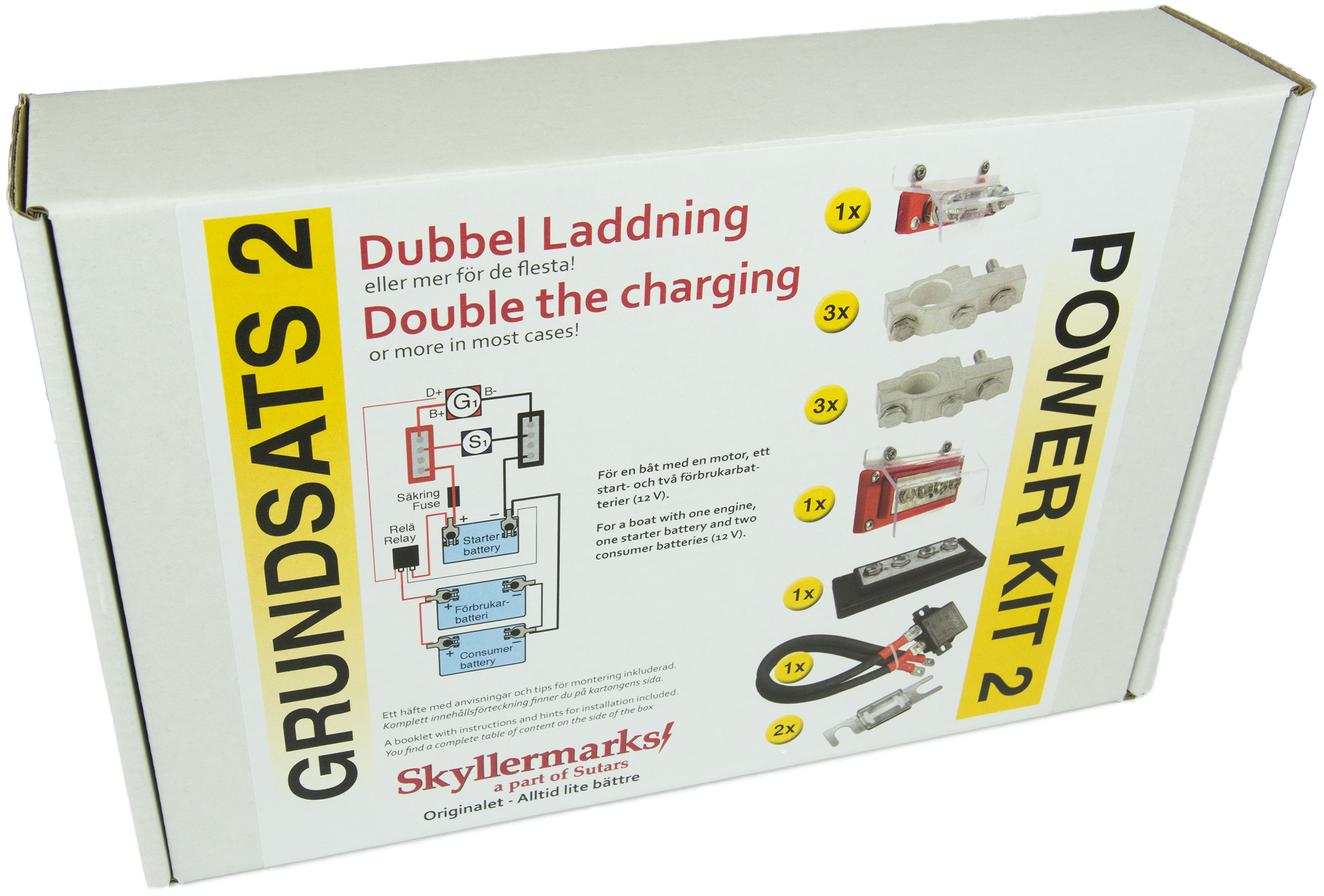 Grundsats för en motor, ett startbatteri och två förbrukarbatterier.